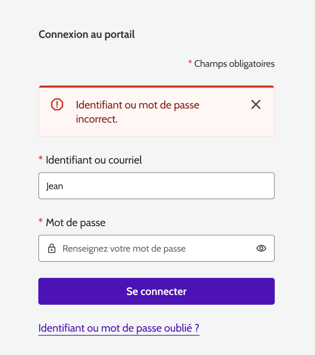 - Fournir un bouton de fermeture lorsque l’alerte n’est pas essentielle à la poursuite du parcours.